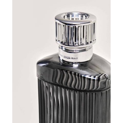 This Black Lampe Berger Alpha fragrance lamp features a classic masculine look. A truly unique fragrance lamp with a striped black lacquered glass and a silver metal top.